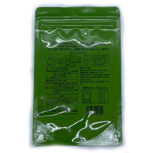 八丈島産の厳選された明日葉と京都府産の宇治抹茶を配合しています。