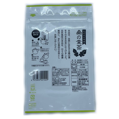 厳選したを九州大分県産桑の葉を使用し独自の製法で蒸し上げた後じっくり丁寧に焙煎しました。 香ばしさの中に独特の風味と自然な旨みが感じられる丁寧に焙煎しました。 容量:2g×14p